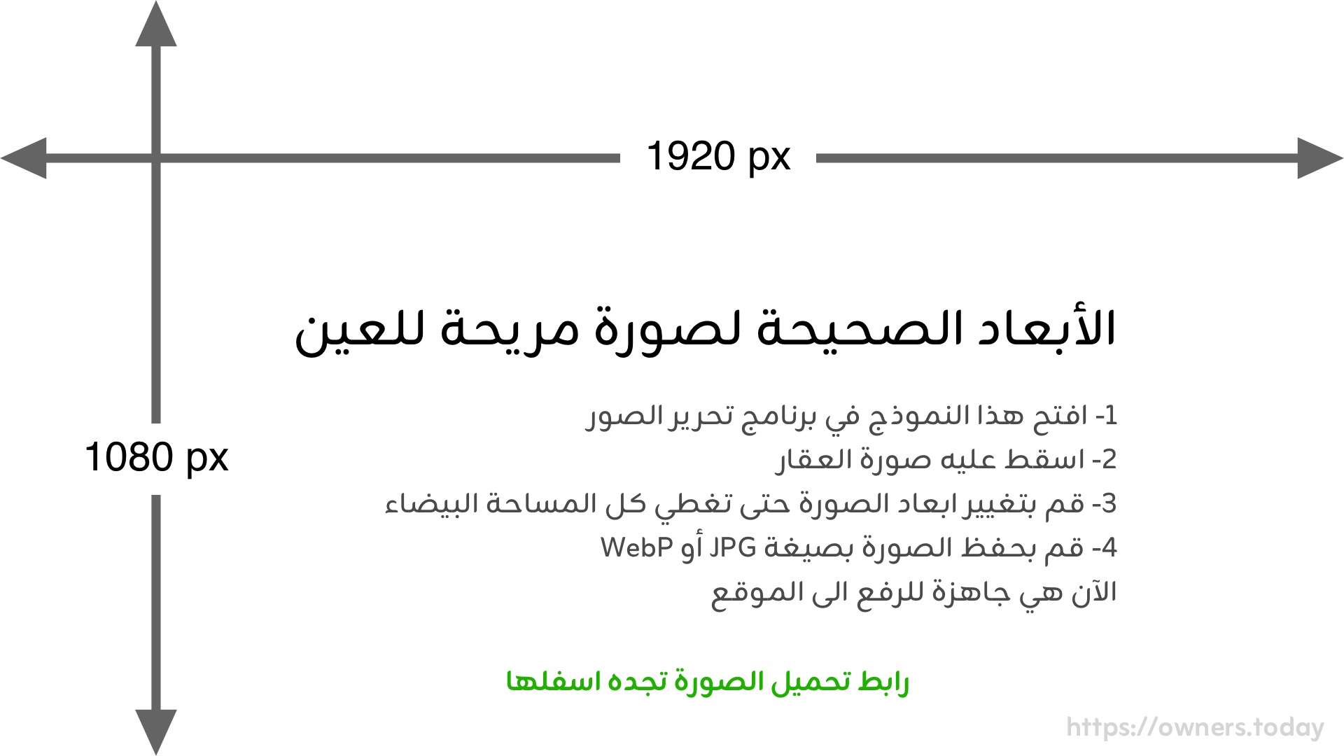 - إختر أفضل صورتين أو ثلاث لكل غرفة وقم بتعديل حجمها كما النموذج ادناه